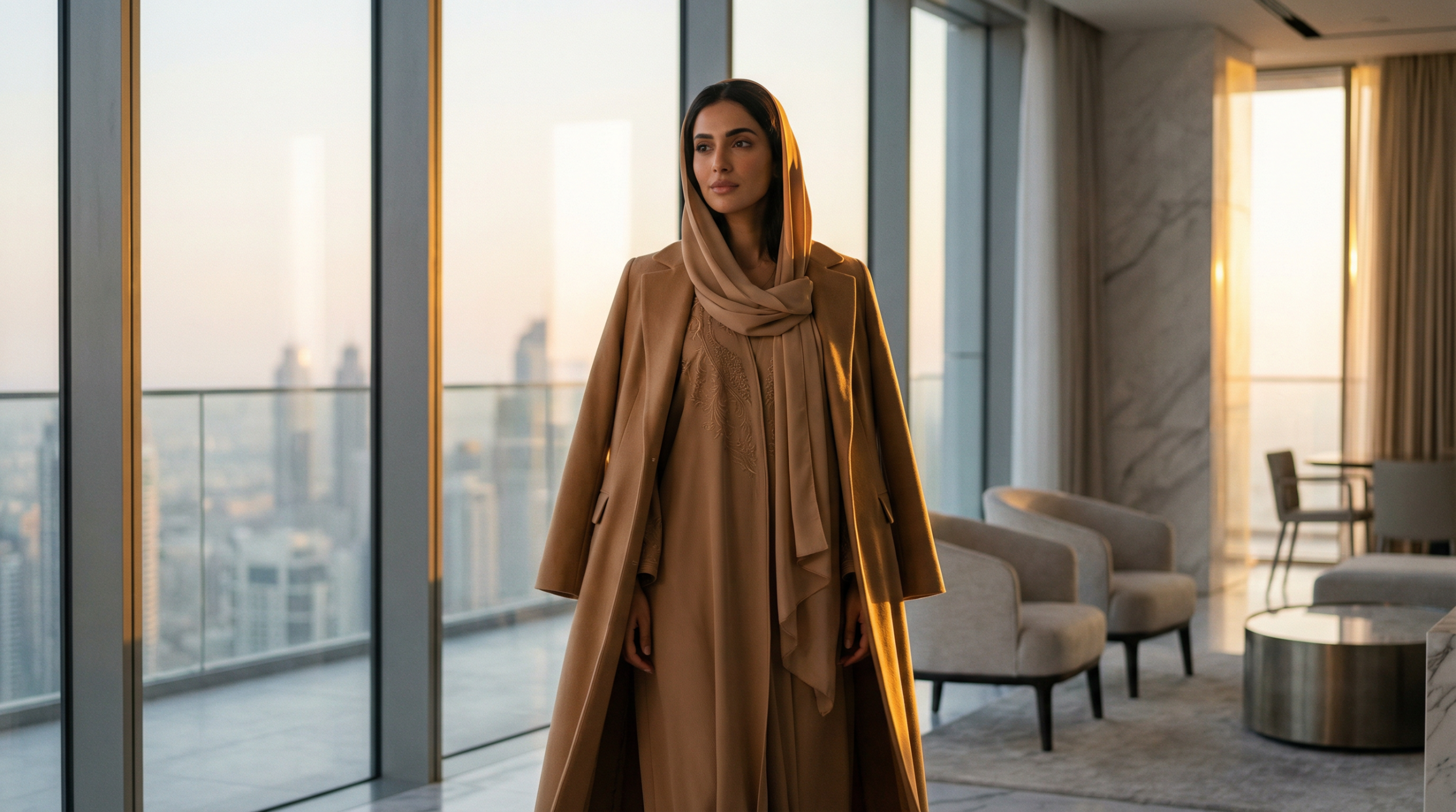 Dubai’s winter, spanning roughly November through February, brings temperatures ranging from 15°C to 25°C—mild by international standards but notably cooler for the region. This climate creates specific styling challenges: how to layer gracefully without overheating, how to maintain modesty while adapting to temperature fluctuations throughout the day, and how to express personal style within cultural frameworks.