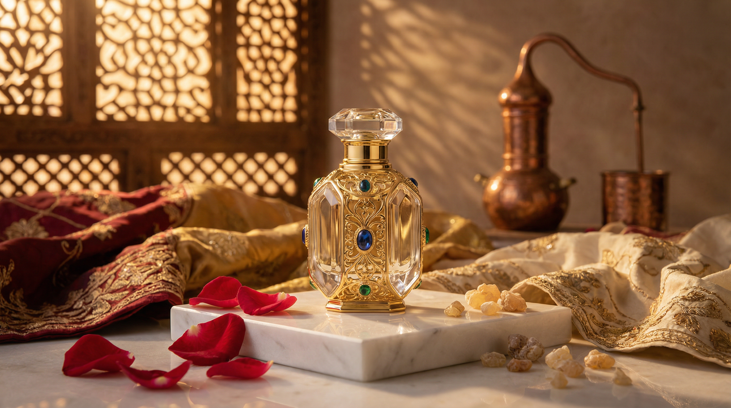 Historical texts describe ghaliya, an opulent paste perfume blending ambergris, musk, saffron, sandalwood, and rose. Unlike simple oil blends, ghaliya required months of maceration, with ingredients ground in marble mortars and aged in sealed containers. Royal households employed dedicated perfumers who guarded their specific ratios jealously. This tradition faded as ingredient costs soared—genuine ambergris and natural musk became prohibitively expensive for all but the wealthiest families.