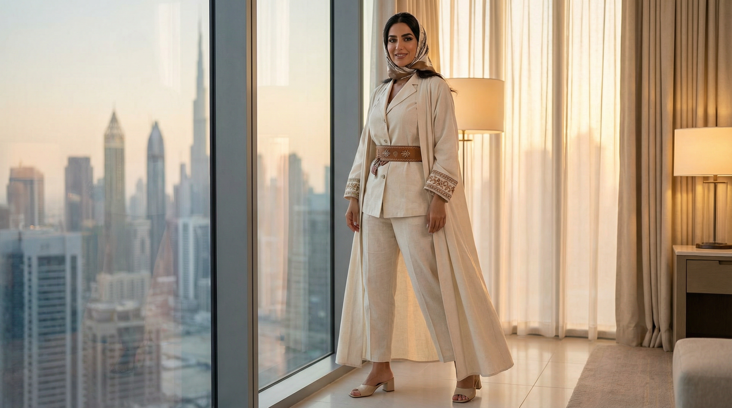 The unforgiving heat of the Arabian Peninsula demands strategic fabric selection. Linen blends have surged in popularity for 2026, offering breathability without the excessive wrinkling that pure linen often brings. These blends maintain structure throughout long days while allowing air circulation.