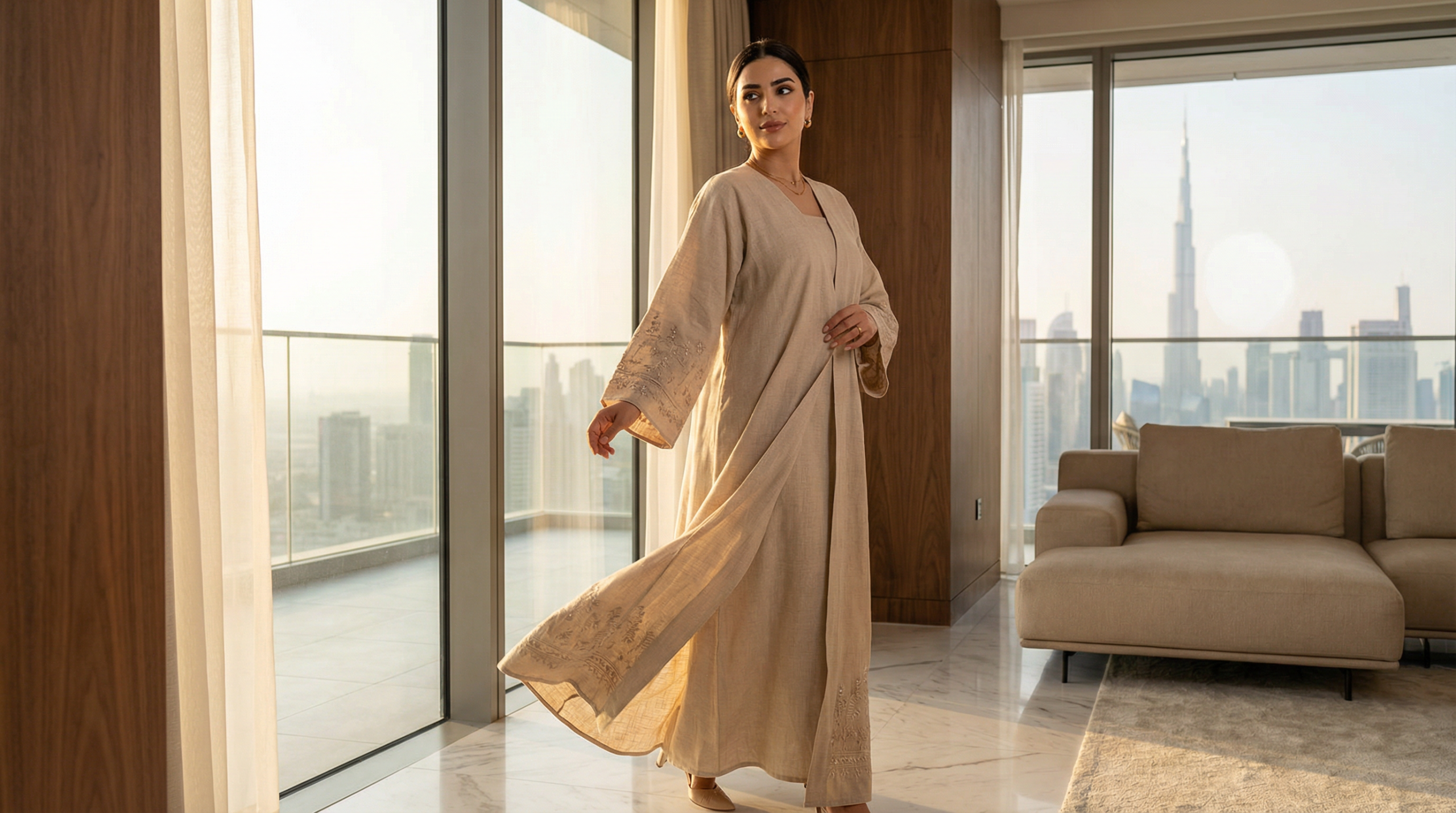 Modern designers are drawing from traditional Bedouin textiles and embroidery techniques, reimagining them through a sustainability lens. The natural palette of the desert—warm beiges, soft taupes, ochres, and creams—dominates linen abaya collections in 2026. These earthy tones complement diverse skin tones while reflecting a return to nature-inspired aesthetics.
