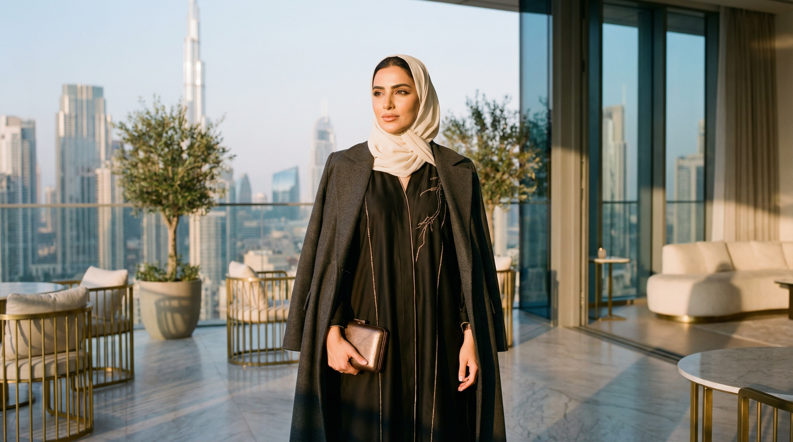 Layering techniques specific to modest fashion require attention to fabric weight and silhouette. In Dubai’s winter months of January and February, layering becomes both practical and stylish. Pair a fitted abaya with a flowing kimono for textural contrast. Drape an open abaya over an embellished piece to highlight decorative elements while maintaining modesty.